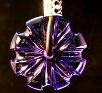 Made To Order: Potion U or V Carved CarverGem. Each gem created will look slightly different than the one in the attached picture as the fuming within the color is unique Potion changes in different lighting situations. CFL vs Sunlight. Blue to Royal Purple. Approximately 1.3" across the face of the pendant. Strung on leather adjustable cord with silver-plated accent bead. 2mm hole if you choose to re-string it yourself! 36" Slip knot leather cord will allow easy adjustment from choker to long center-chest length. Flame worked on a mandrel and cold worked to carve. Flame polished and annealed.