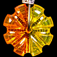 MADE TO ORDER: Terps U-Carved and V-Carved CarverGem. The pendant is approximately 1.3" across the face. Strung on leather adjustable cord with silver-plated accent bead. 2mm hole if you choose to re-string it yourself! Slip knot cord will allow easy adjustment from choker to long center-chest length. Photo of Erika wearing a CarverGem for size reference. They all run +/- .1". Photo of Erika wearing a CarverGem for size reference. They all run +/- .1". This piece is flame worked, cold worked, flame polished and annealed to perfection!